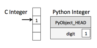파이썬 변수의 경우는 프로그램 실행시의 변수는 파이썬 개체의 일부 종류임.