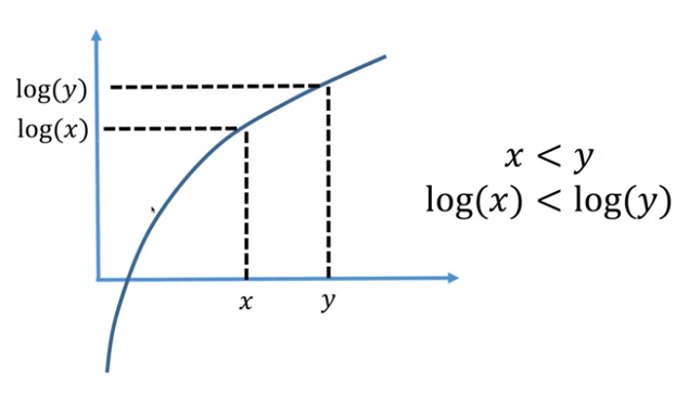 로그 함수의 특징은 x<y일때 log(x) < log(y)가 항상 크다.