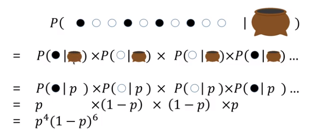 항아리 안의 구성 상태를 의미하는 p*는 우리가 목격한 사건들이 발생할 확률을 가장 높게 만드는 p이다.
