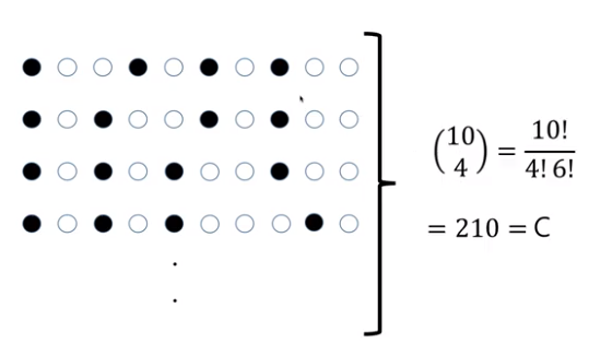 근데, 10번 추출해서 4번 검은 구슬 나오는 경우가 많다. 경우의 수