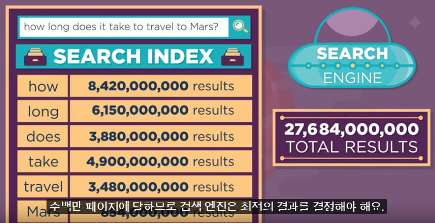 하지만 이렇게 검색어가 포함된 결과는 수백만 페이지에 달하므로 검색 엔진은 최적의 결과를 결정해야 해요.