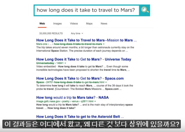 화성까지 가는데 얼마나 걸리나요? 라고 질문하면 검색 엔진은