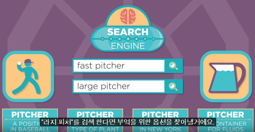 예를 들어 빠른 피처 라고 검색 한다면 여러분이 운동 선수를 찾는다는걸 알겠지만 라지 피처를 검색 한다면 부엌을 위한 옵션을 찾아낸다.