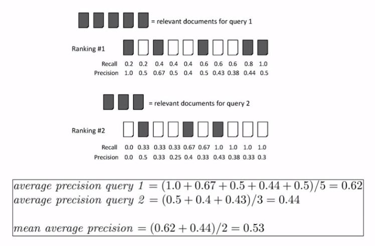 평균 정밀도의 평균을 취하여 여러 쿼리의 순위를 요약