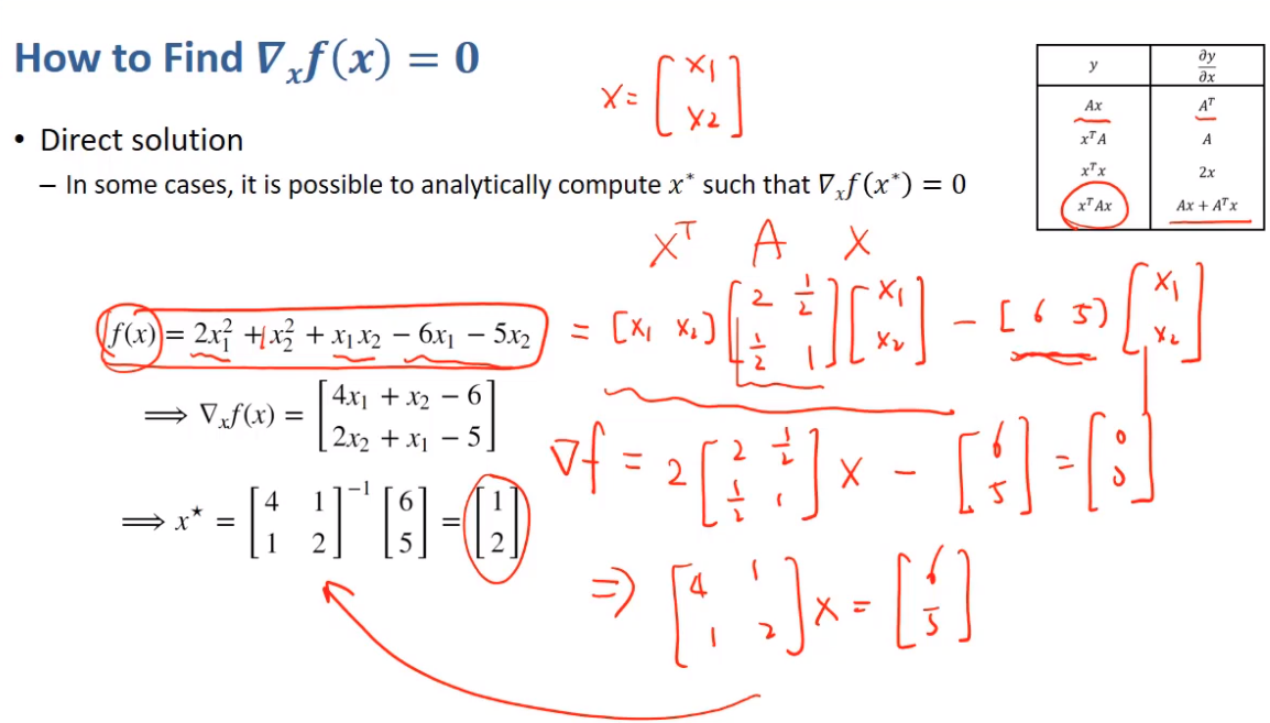 기울기가 0이 되게하는 $ x^{*} $가 최적해가 된다는 것을 알고 있다.