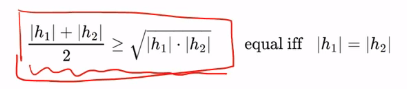 등호가 성립하는 조건은 h1와 h2가 같을때이다. (maximum이 된다는 의미이다)
