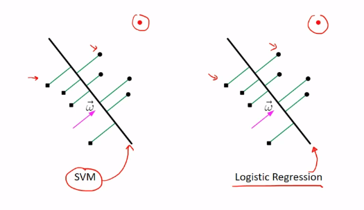 logistic regression은 모든 데이터 point를 고려하는것이 근본적 차이.