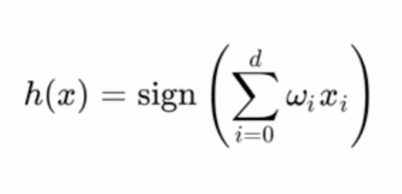 $ h(x) = sign(\sum_{i=0}^{d} w_{i}x_{i}) = sign(\omega^{T} x) $