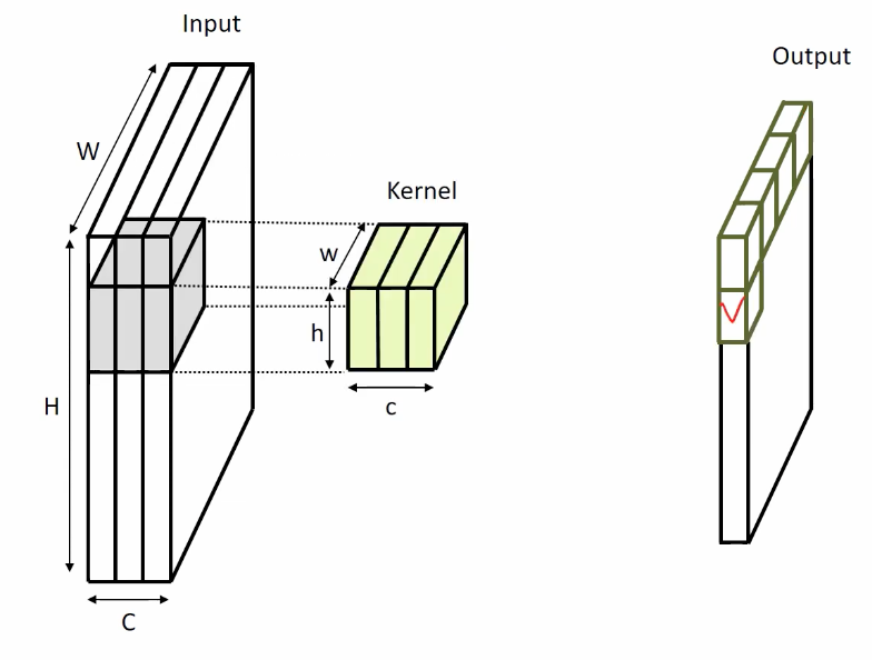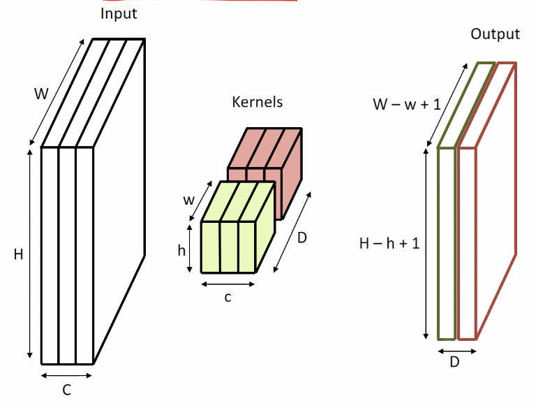 커널의 구조가 위와 같다. 전체 큐브가 커널($3 \times 3 \times 3$)이다.