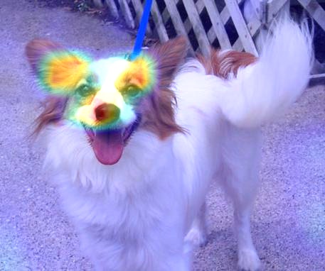강아지 클래스에 대한 히트맵은 이미지에서 강아지와 비슷한 부분을 알려준다.