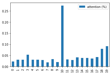 pd.DataFrame(attention_vector_final, columns=['attention (%)']).plot.bar()