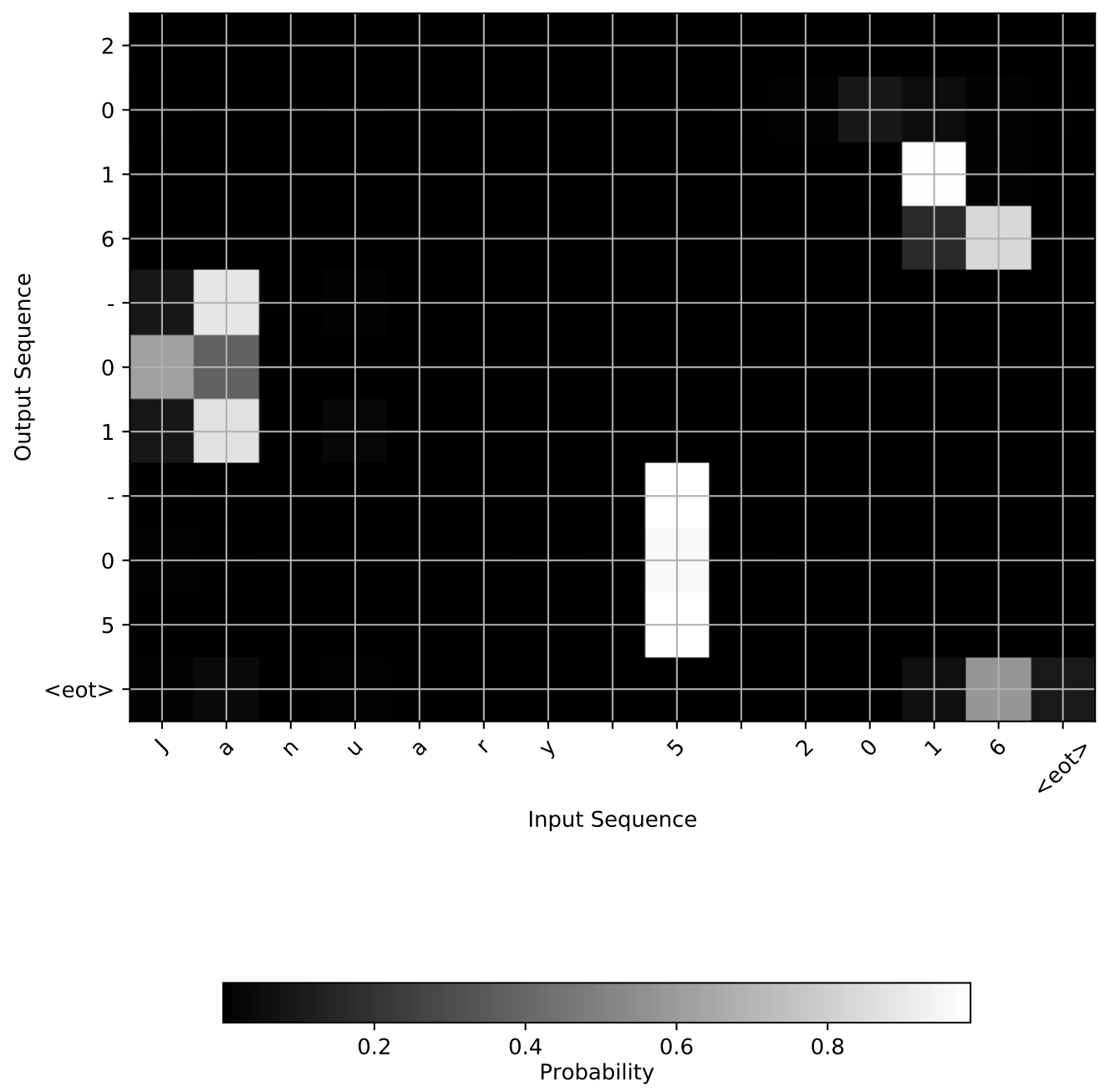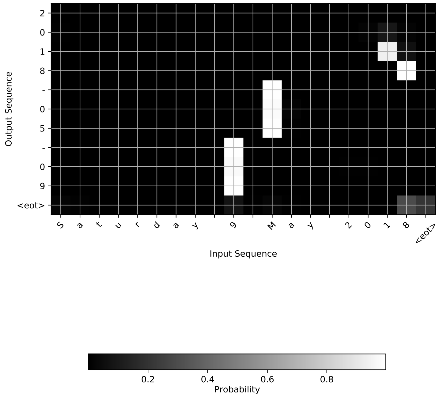 “2016–11–05”와 같은 스탠다드한 포맷으로 번역하는 어텐션 모델을 살펴보고, 그 결과를 시각화해본다.